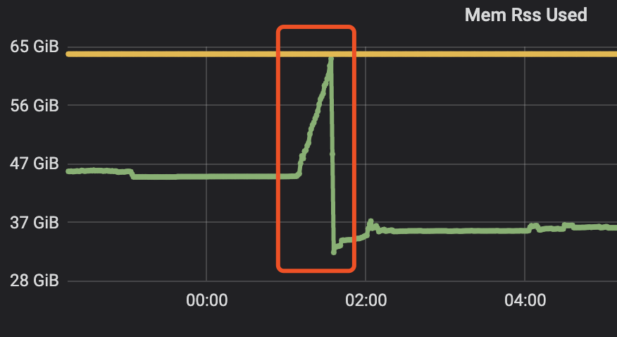 在某个时间段容器开始暴涨,由于jvm限制了,可以认为是堆外内存暴涨,导致节点重启