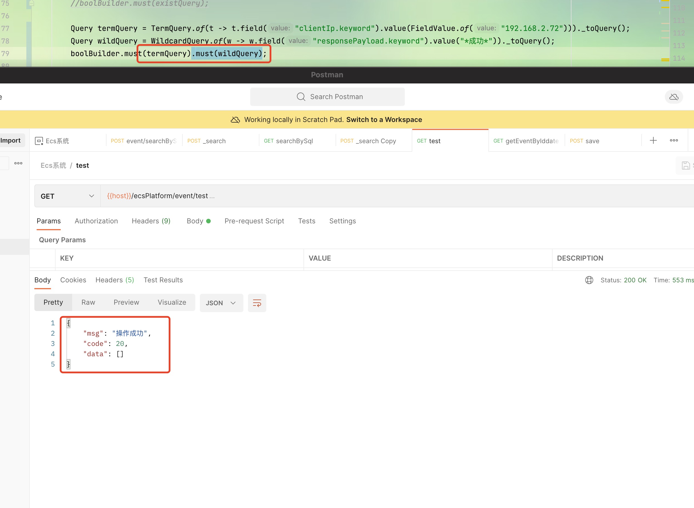 实际上符合上面条件的数据是有的,但是用 term(源ip = 192.168.2.72) must wildcard(响应负载 like 成功)后没有数据,然后我把ip 192.168.2.72 改成 192.168.2.213 后,( like 失败/成功 ) 和 ( not like 失败/成功 ) 都正常。